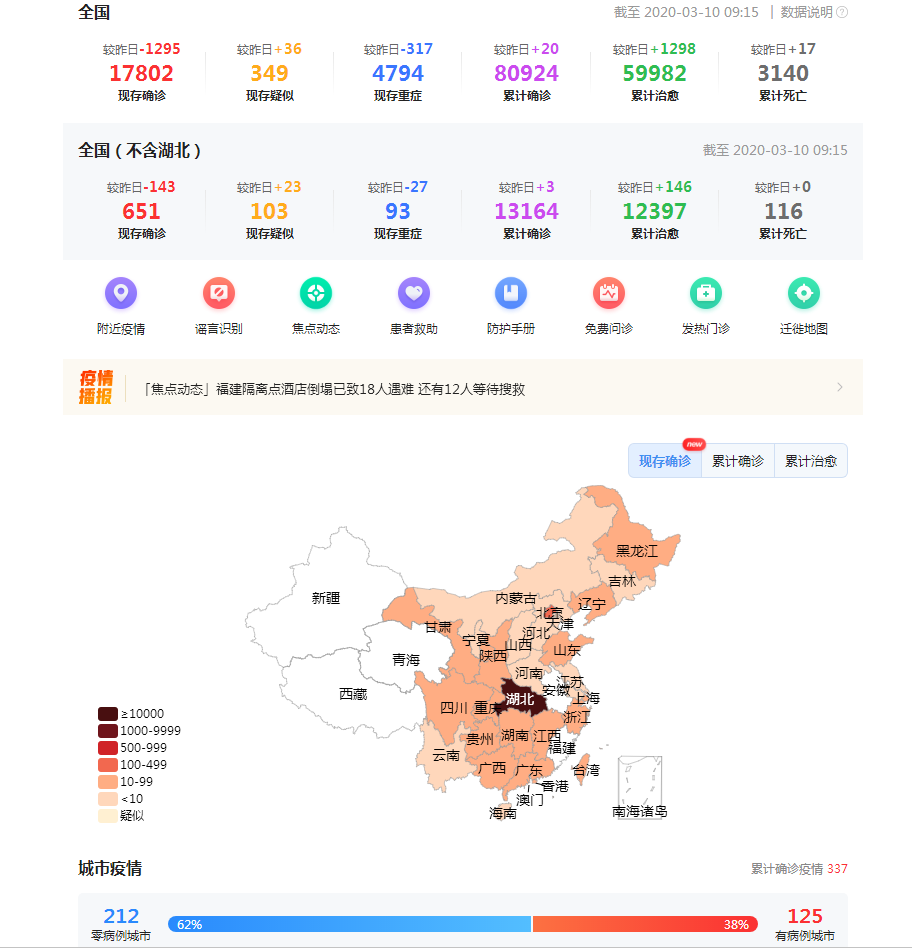 新冠疫情最新数据2010-03-10