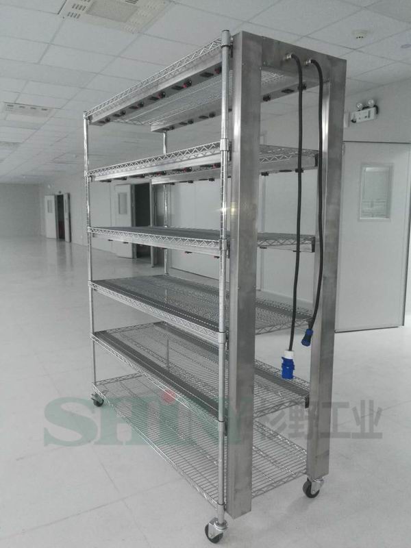 2. 主架采用40x40mm方通支撑,层面加强,整车承重≥200公斤。每层上部延边钣金成形线槽,插座定位。