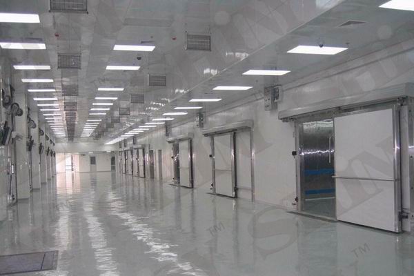 装配式冻库是用预制的钢夹心保温板块,按一定的容量拼装而成的。库板厚度有75mm、lOOmm、150mm和200mm等系列,库板尺寸宽1200mm、长800mm以下范围内,根据需求选取。冻库门能灵活启闭、关闭严密、使用可靠。另外,冻库门内的木制件经过干燥防腐处理,不易受潮变形,冻库门锁装有安全脱锁装置,在低温装配式冻库的门框上暗装有电压为24V以下的电加热器,以防止冷凝水和结露。库内装防潮灯,测温元件均匀地置于库内各处,其温度显示器装在库体外墙板易观察位置处。