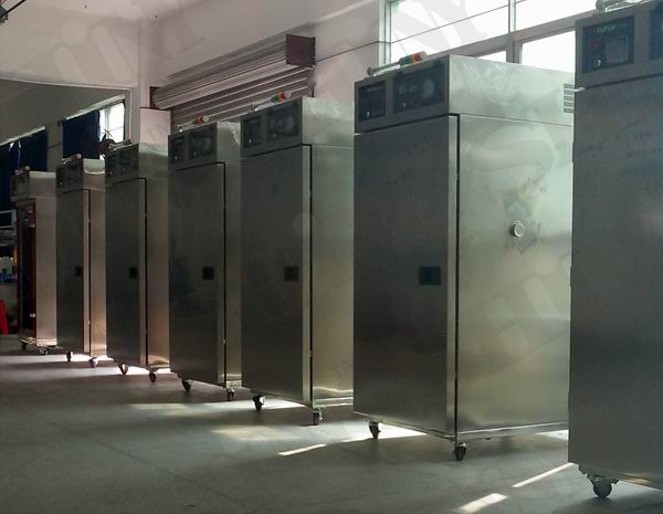 7.1 采用单门设计,控制箱位于机台右方; 7.2 内部材料: 采用SUS304#镜面不锈钢板,经碱性苏打水清洁,去掉油污,避免烘烤时产生灰尘; 7.3 外部材料:采用拉丝不锈钢板制造; 7.4 保温材料:采用国产优质超细玻璃棉,100K级高密度高保温材料制造,六面保温; 7.5 ★运风方式:采取平面水平由后向前送风后往前门(特殊风道设计)方向送风。 7.6 排气口:电磁阀排气口,用于达到强烈循环效果而降温的目的。(贵公司提供抽风机加强效果,风管接头5” ) |